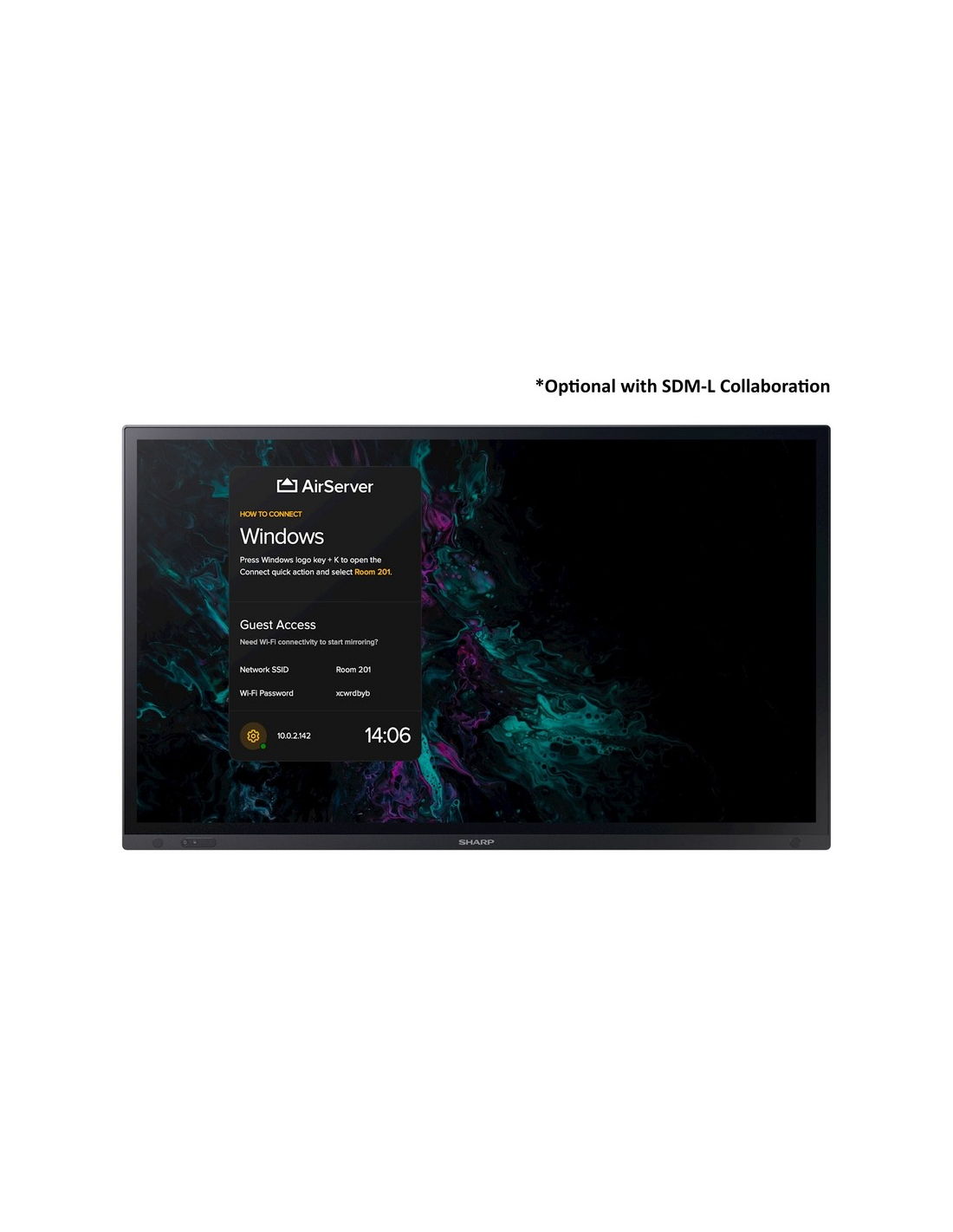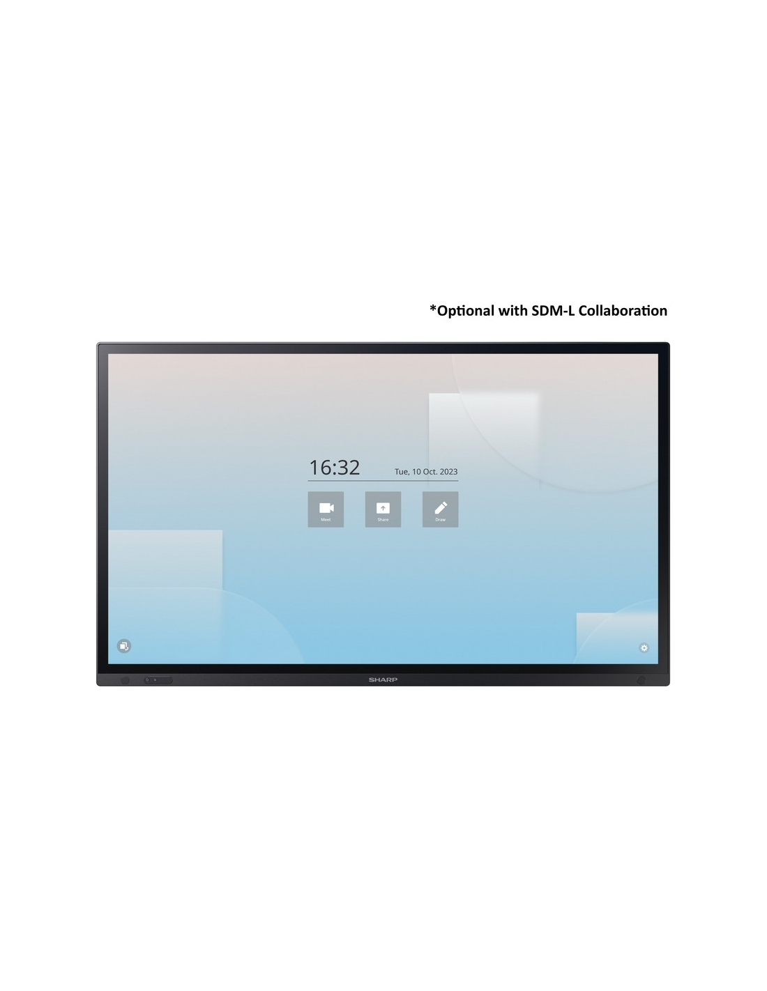 PC à encastrer Intel SDM basé sur Windows en option – pour une polyvalence illimitée grâce à un puissant système informatique intégré. Il est équipé du Meeting Launcher de Sharp pour un accès rapide et facile à vos applications dans un environnement sécurisé et verrouillé.