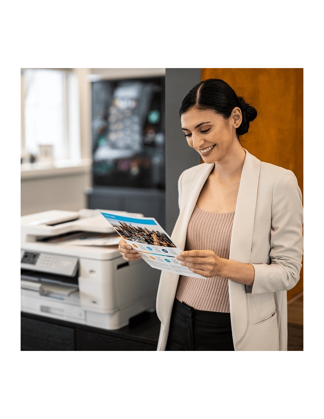 L'imprimante MFC-J6955DW est conçue pour les entreprises ayant besoin d’une imprimante A3 tout-en-un faible en consommation d’énergie. Fonctionnant sans préchauffe, elle vous permet non seulement de consommer moins d'énergie, mais aussi de bénéficier d'un temps d'impression de la première page exceptionnellement rapide, inférieur à 5 secondes, et d'une vitesse d'impression pouvant atteindre 30 ipm, le tout sans perdre en qualité d'impression.