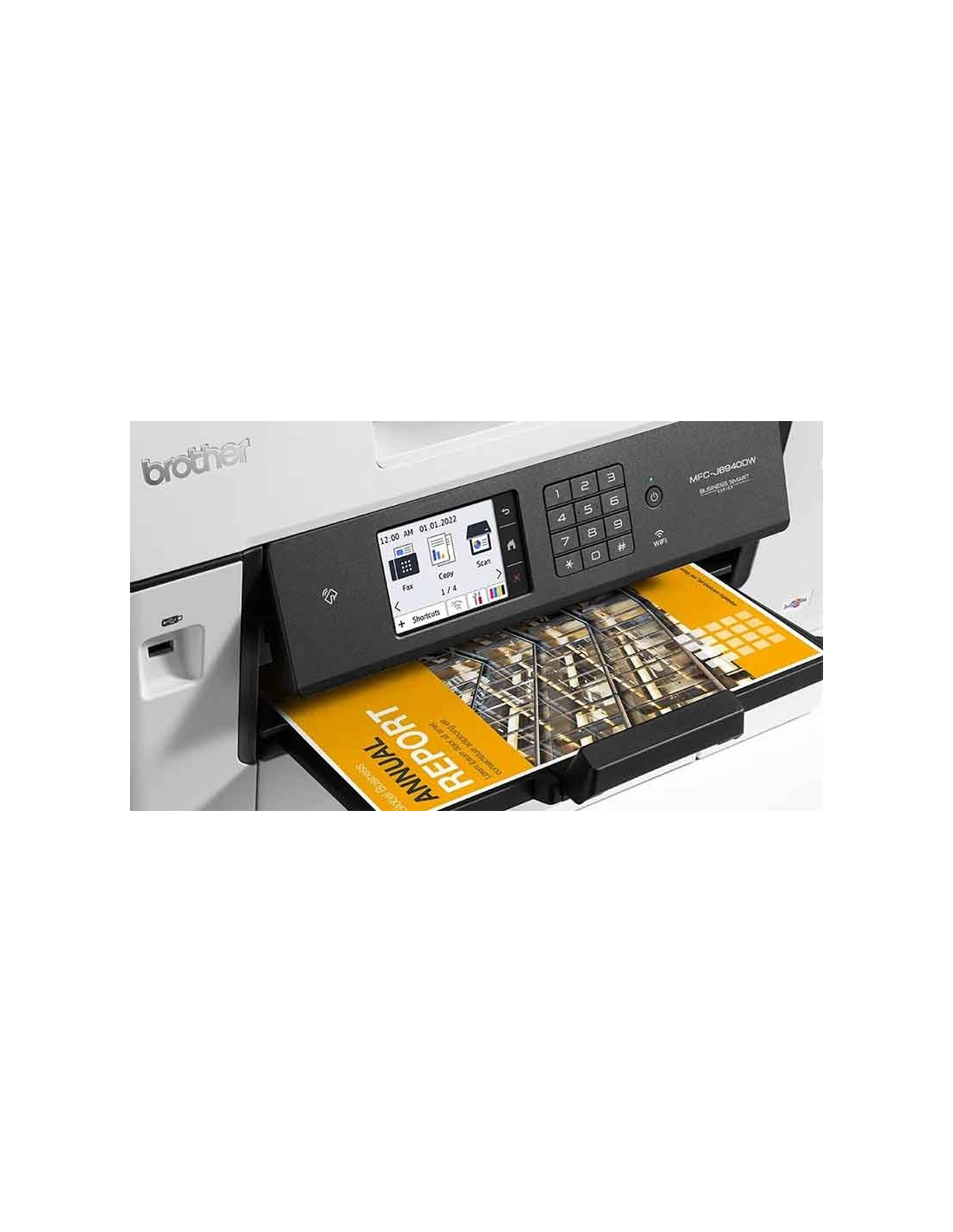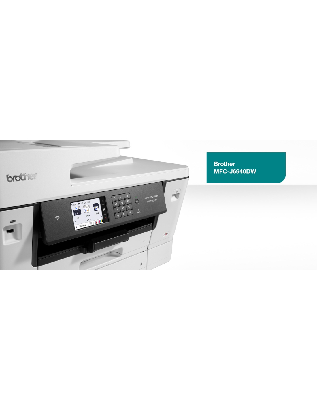 L'imprimante jet d'encre couleur Brother MFC-J6940DW est un modèle 4-en1 A3 permettant l'impression, la copie, la numérisation et le fax (modem fax 33.6 kbit/s).