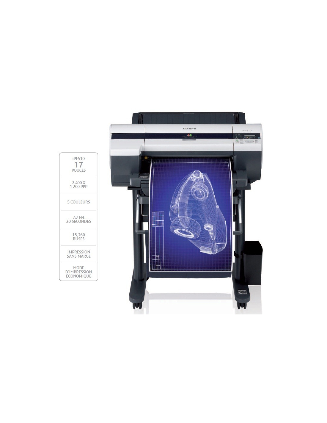 Conçue pour fournir la qualité de rendu de tracé et la productivité exigées par les spécialistes de la CAO, l'iPF510 offre une prise en charge totale des formats de fichiers de CAO professionnelle HP-GL/2 et HP RTL, doublée d'un pilote HDI pour Windows.