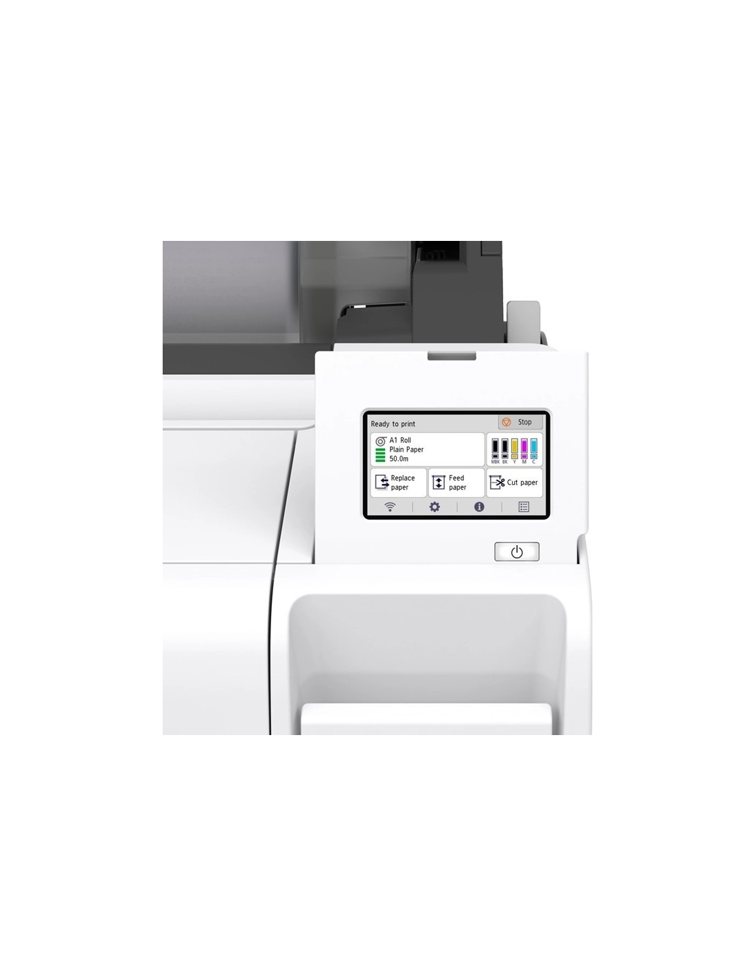 Laissez-vous guider par des instructions simples et consultez des informations importantes, telles que le type de support, la quantité de support et la quantité d'encre restante, avec un écran tactile de 4,3 pouces. Gagnez du temps avec un chargement facilité de la bobine à l'aide d'un couvercle supérieur plat.
