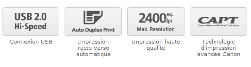 Profitez de tous les avantages d'une incroyable vitesse d'impression de 25 ppm. Les technologies « Quick First Print » (impression première page rapide) de Canon assurent une reprise rapide après le mode veille : le temps de préchauffage très rapide s'effectue en l'espace de 10 secondes après la mise en marche. Grâce à son temps de sortie de première impression de 6 secondes maximum, vous serez en mesure de respecter les délais les plus serrés.
