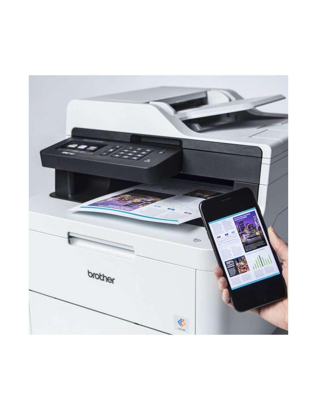 Son chargeur automatique de 50 feuilles, associé à son écran tactile couleur de 9,3 cm en fait un multifonction avant tout ergonomique. Imprimez directement depuis un mobile ou une tablette grâce à sa connectivité Wi-Fi direct.