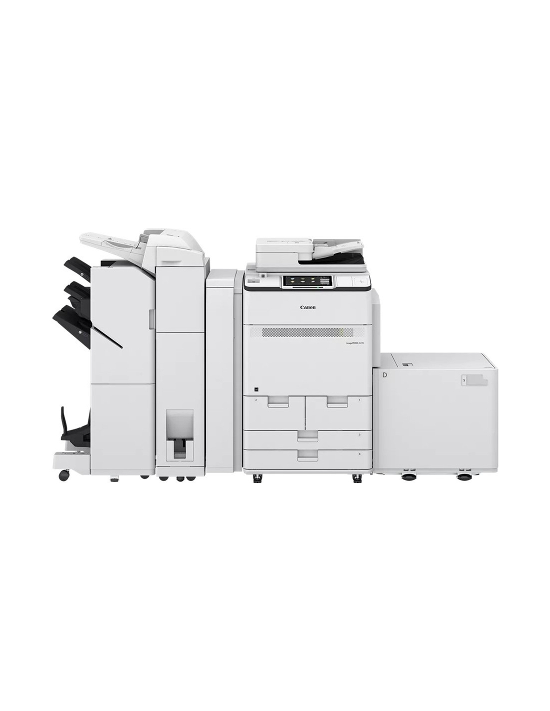 Options de finition : Module de finition de brochures, module de finition agrafage, massicot de chasse de brochures et unité de perforation