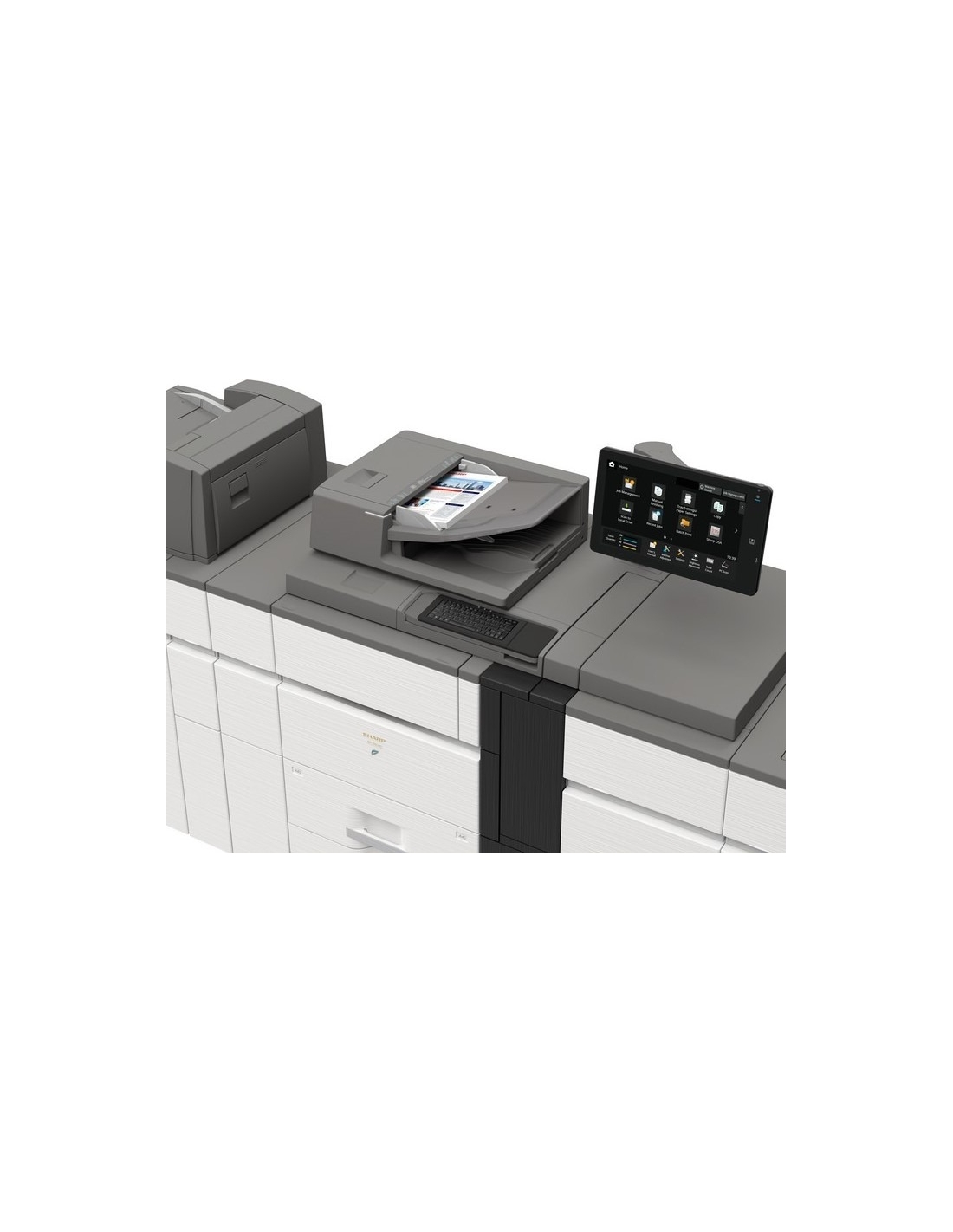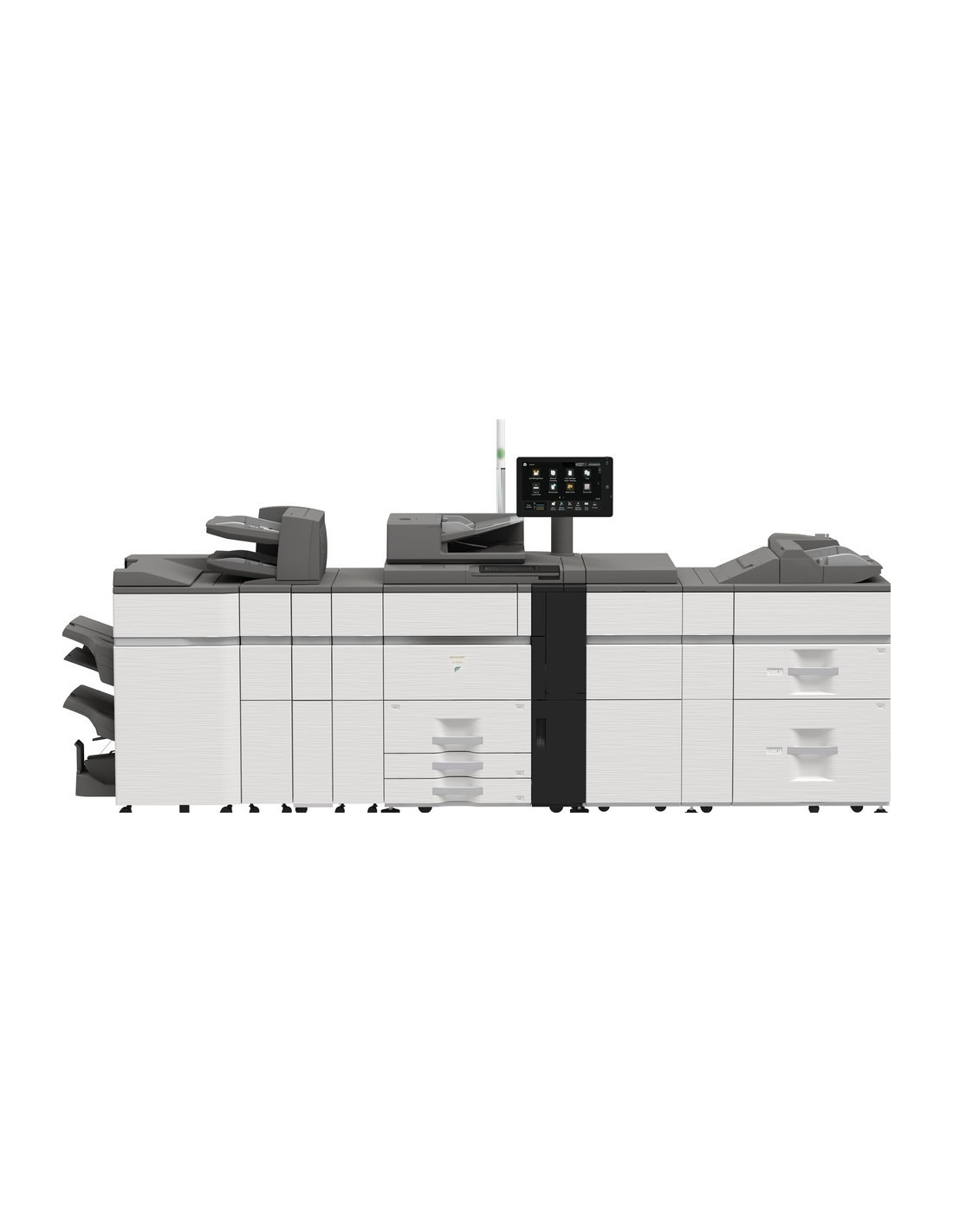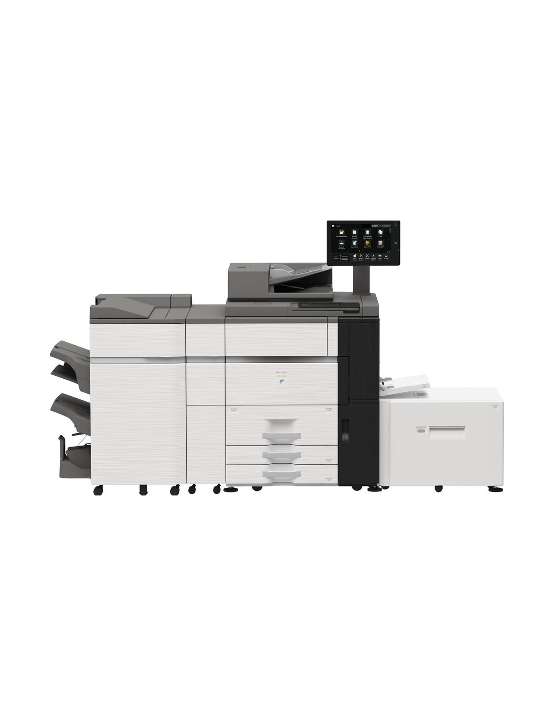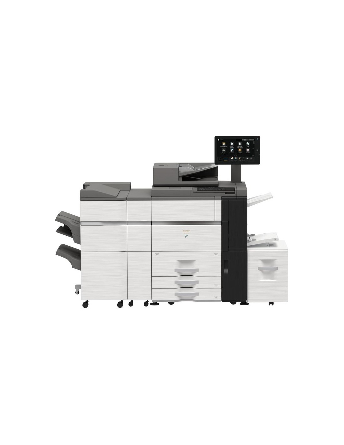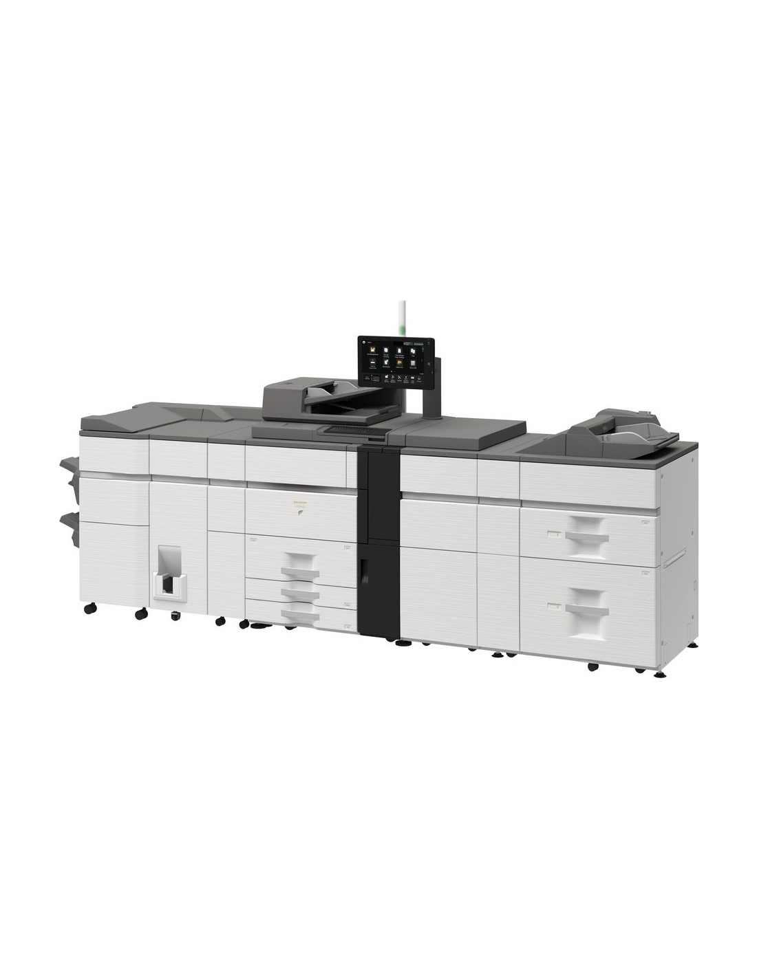 Le grand écran utilisateur tactile couleur de 15,4 pouces vous permet de suivre et de contrôler la progression de chaque travail et l'état du matériel en toute simplicité.