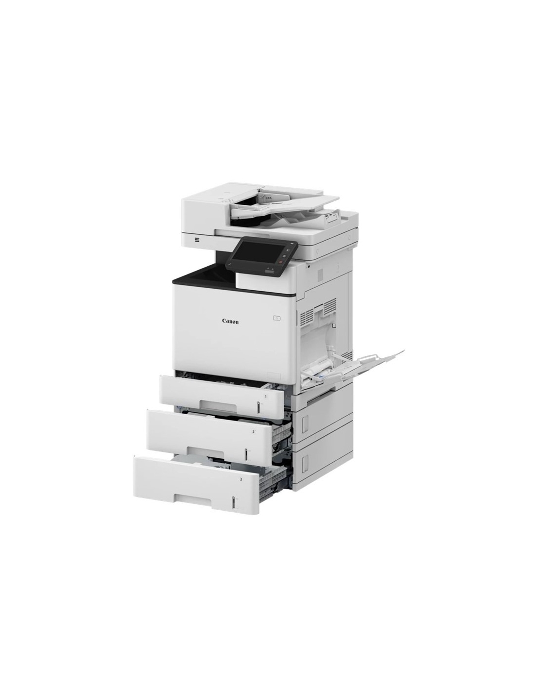 Chargeur papier (standard) : Cassette 550 feuilles, Bac multifonctions de 100 feuilles, CAD de 100 feuilles