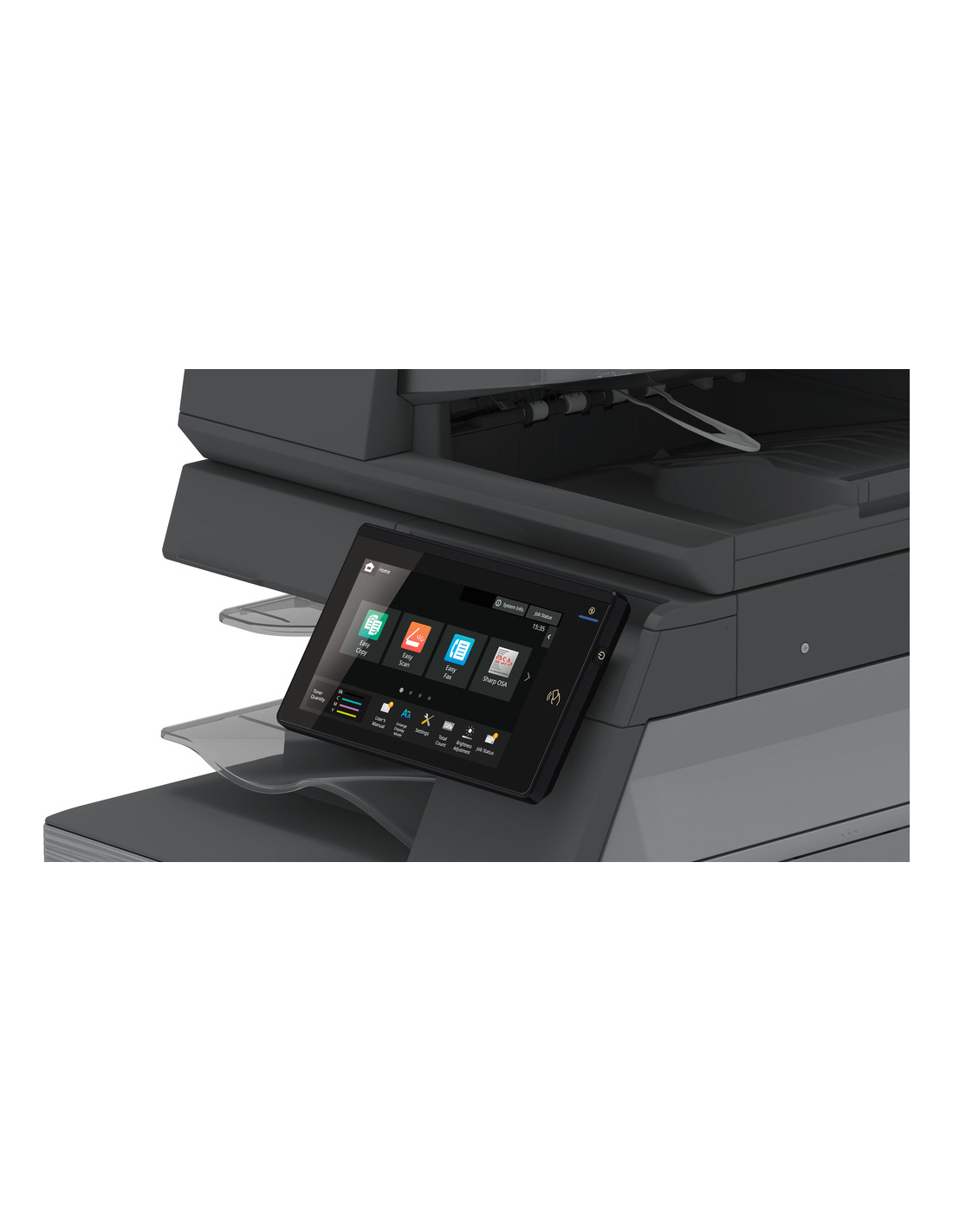 Des voyants lumineux indiquent l'état de l'imprimante multifonction et des icônes intuitives sur l'écran LCD couleur inclinable de 10,1 pouces facilitent l'accès à toutes les fonctions d'amélioration de la productivité grâce à une interface tactile de type smartphone.