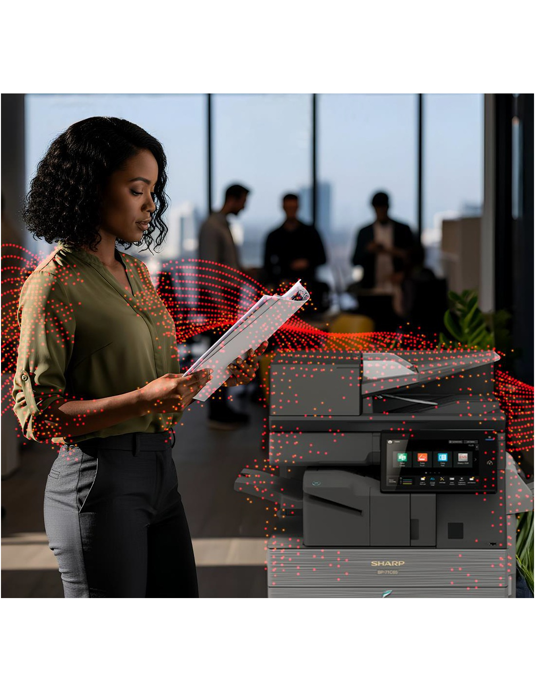 Les travaux volumineux peuvent être traités rapidement et efficacement grâce à des vitesses d'impression et de copie pouvant atteindre 36 pages par minute en couleur et en noir et blanc. La numérisation précise de documents recto verso est rapide grâce au chargeur recto verso intégré de 100 feuilles, avec une vitesse pouvant atteindre 80 images par minute. Le BP-61C36 utilise l'IA pour déterminer la résolution, l'orientation et le taux de compression optimaux pour toutes les tâches de numérisation.