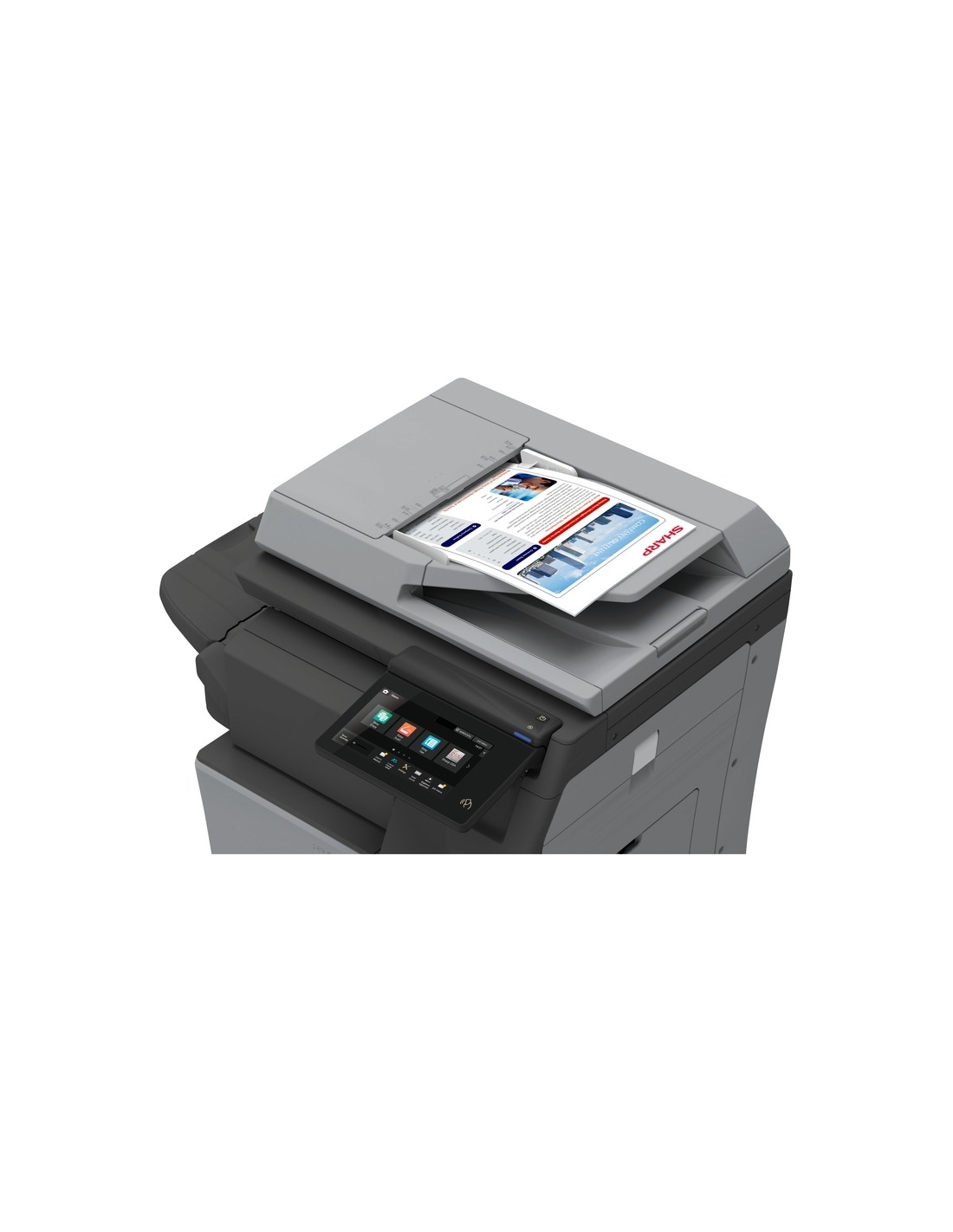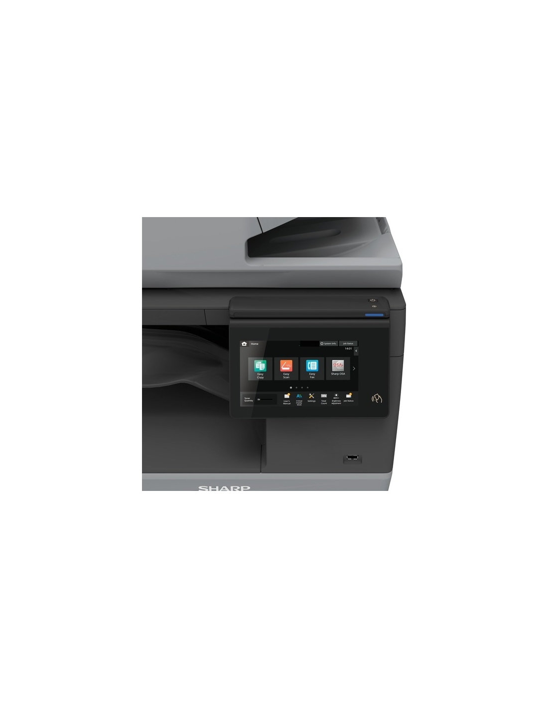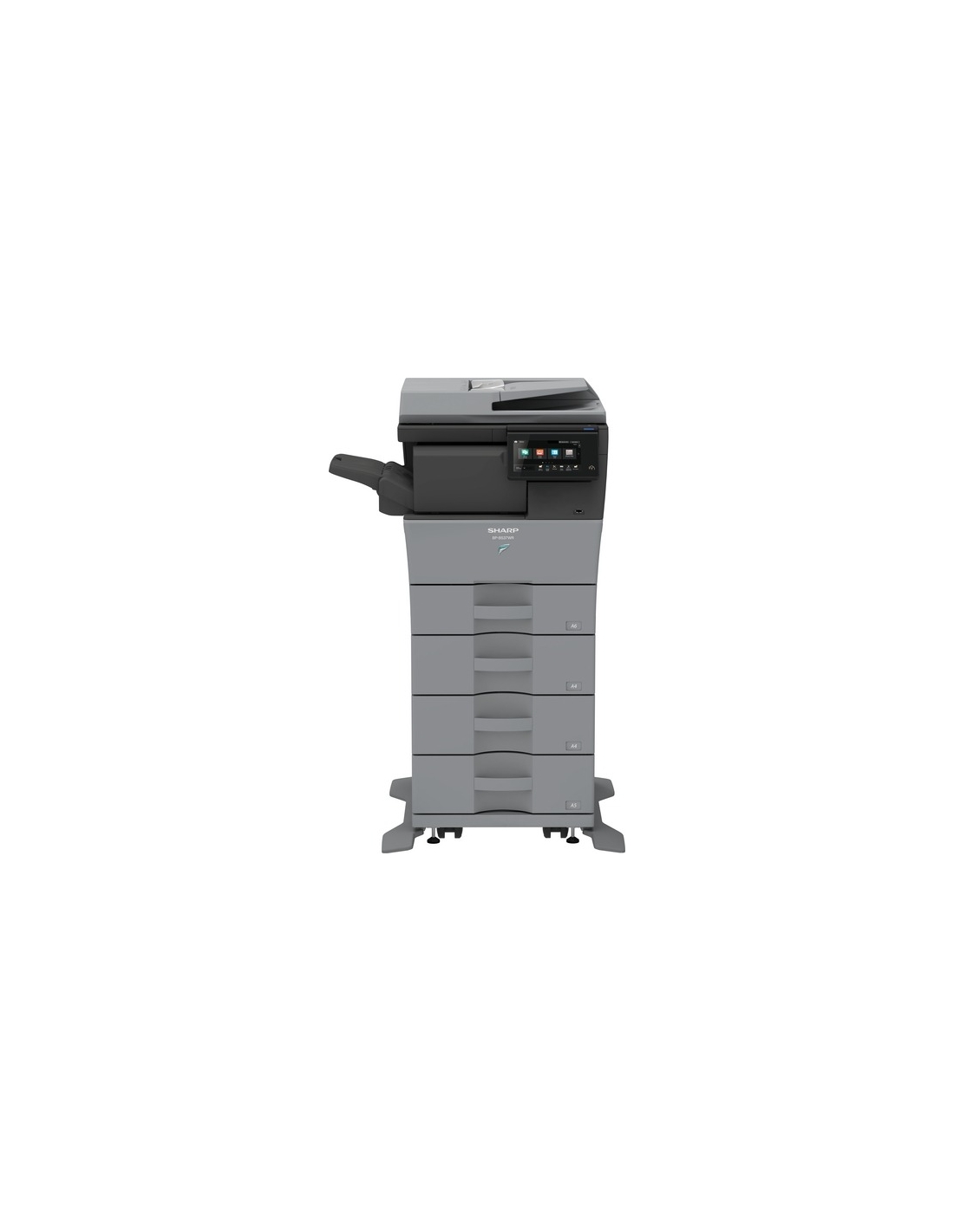 De plus, grâce à sa conception modulaire peu encombrante, ce multifonction s'adaptera à tous les environnements de bureau, qu'il soit utilisé en configuration de bureau ou en configuration au sol entièrement configurée, et vous obtiendrez à la fois quantité et qualité grâce à la capacité papier standard de 550 feuilles (extensible à 2 350 feuilles) et aux capacités de finition optimales pour les documents professionnels.